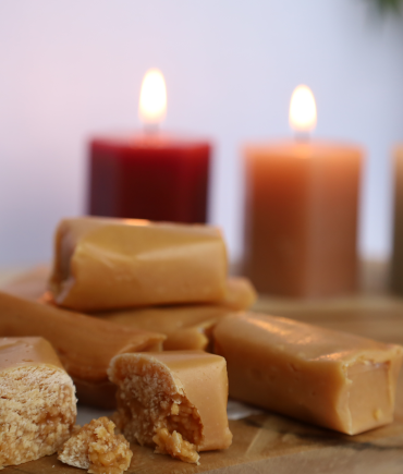 Krówka Kujawska to nasz flagowy produkt – ręcznie wytwarzany, klasyczny cukierek o aksamitnej konsystencji i głębokim, mlecznym smaku.